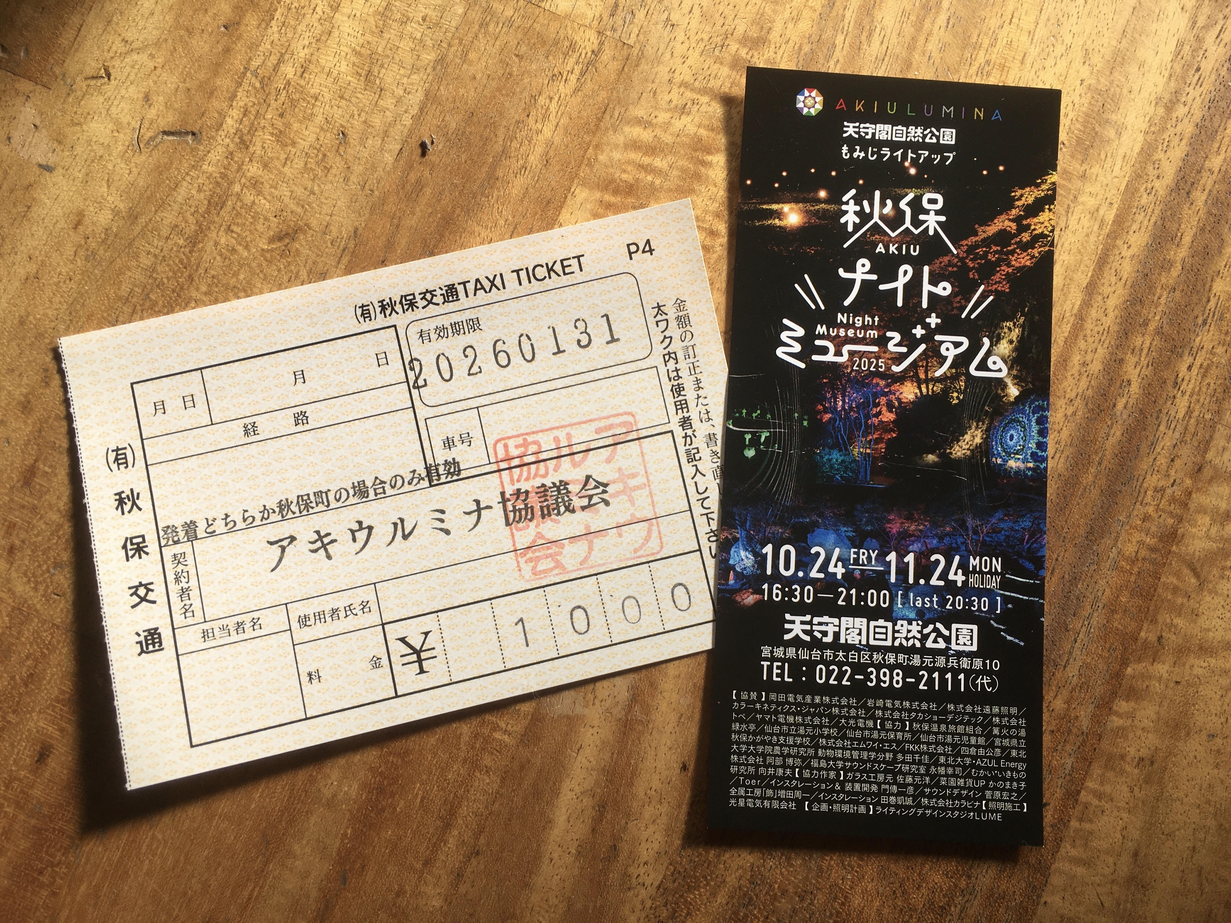 秋保交通のタクシーで「アキウルミナめぐり」 オトクなチケットセット発売中 !
